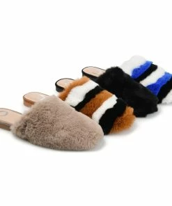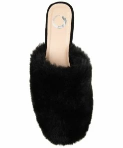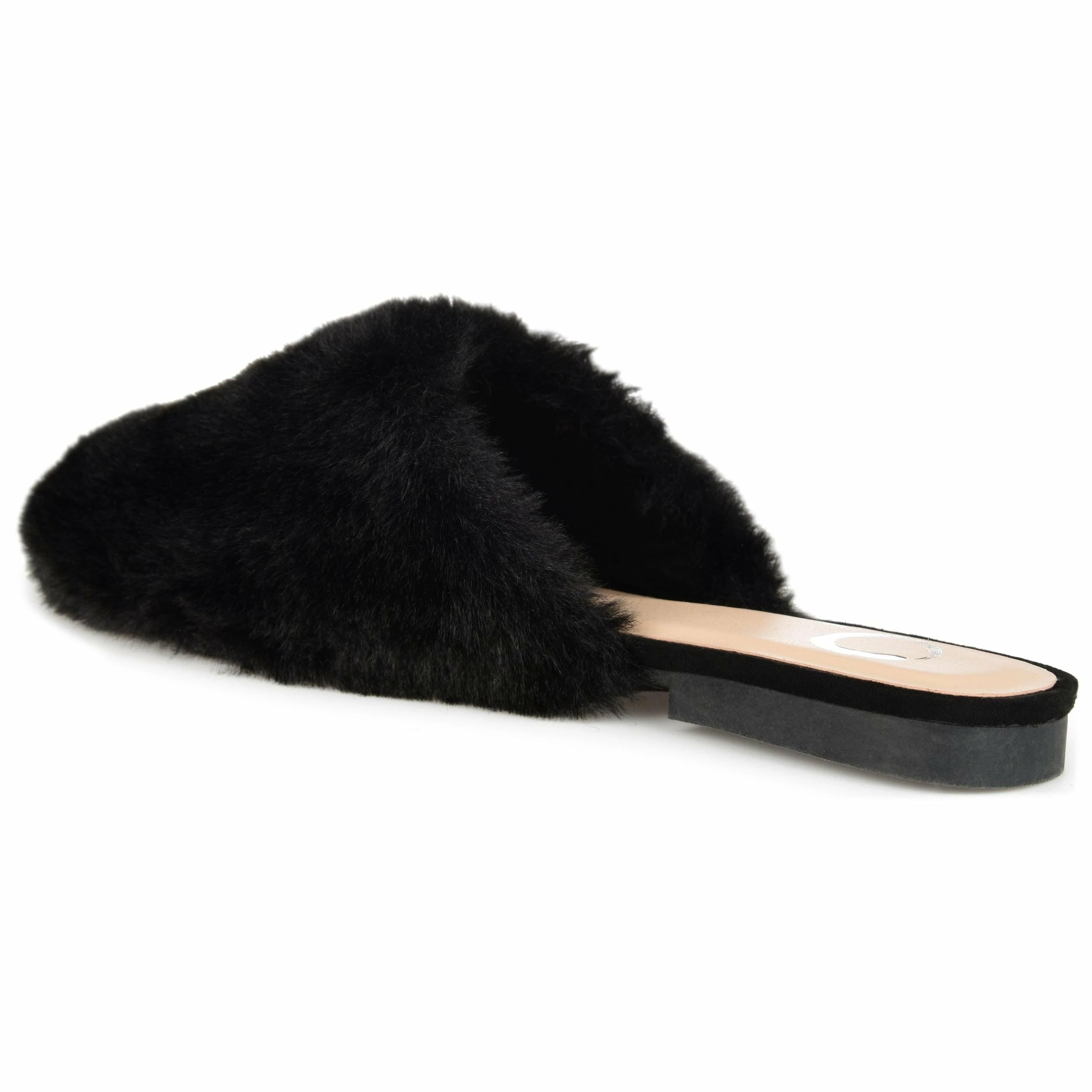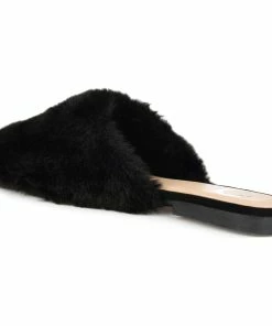 In the mood for a dramatic look? These sassy square-toe mules are detailed with plush fur uppers and a padded footbed for a comfortable fit.