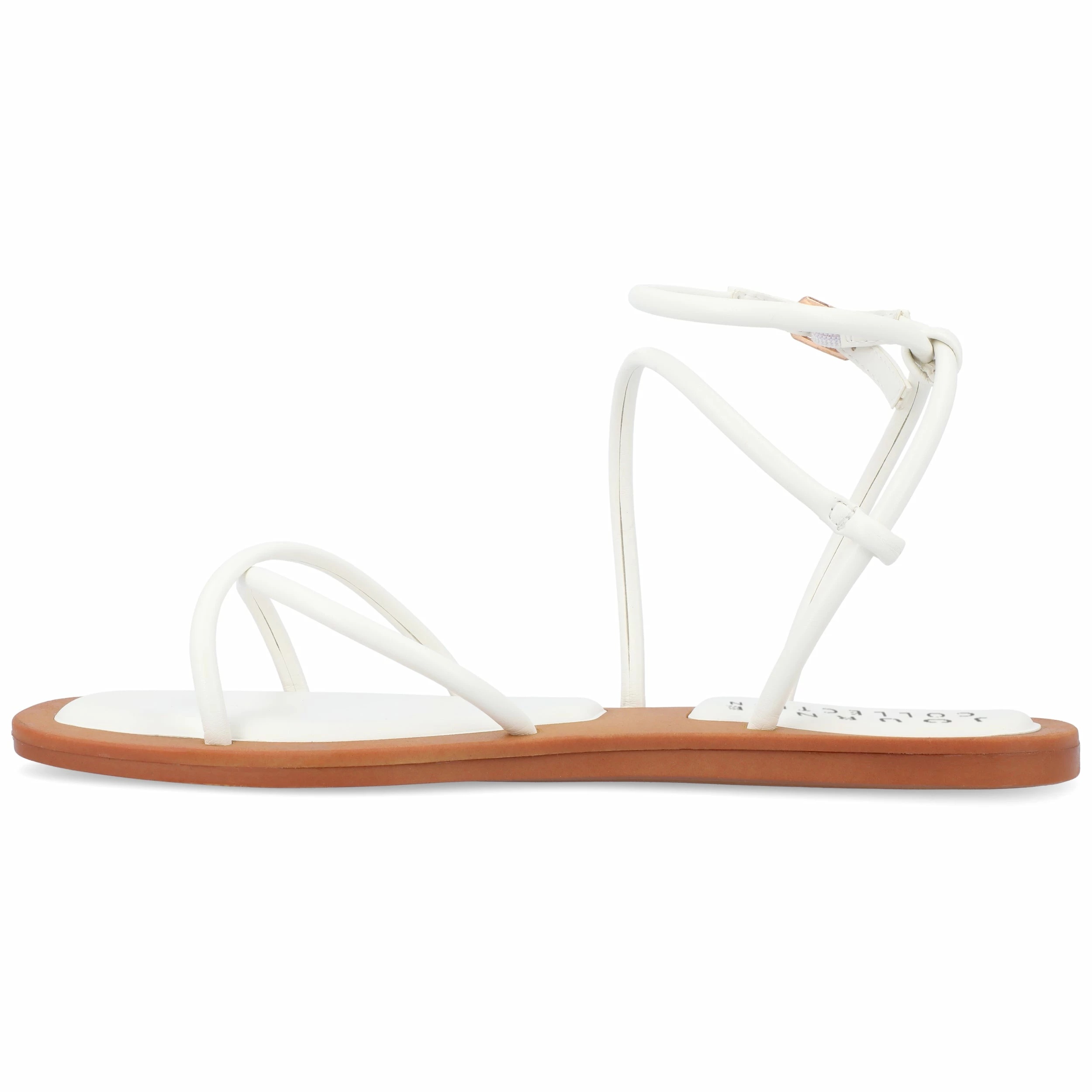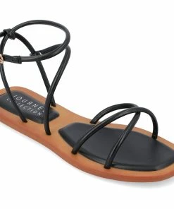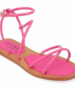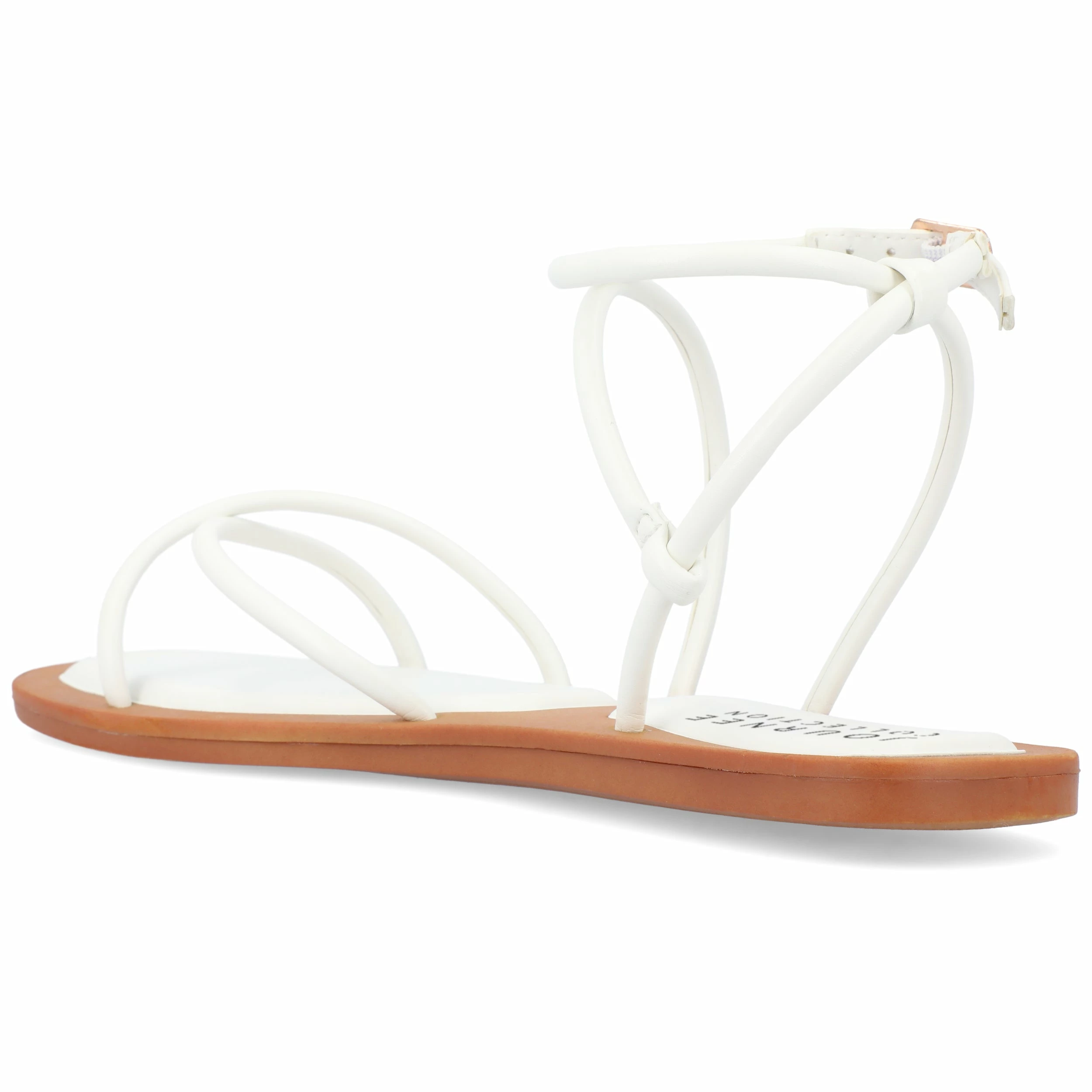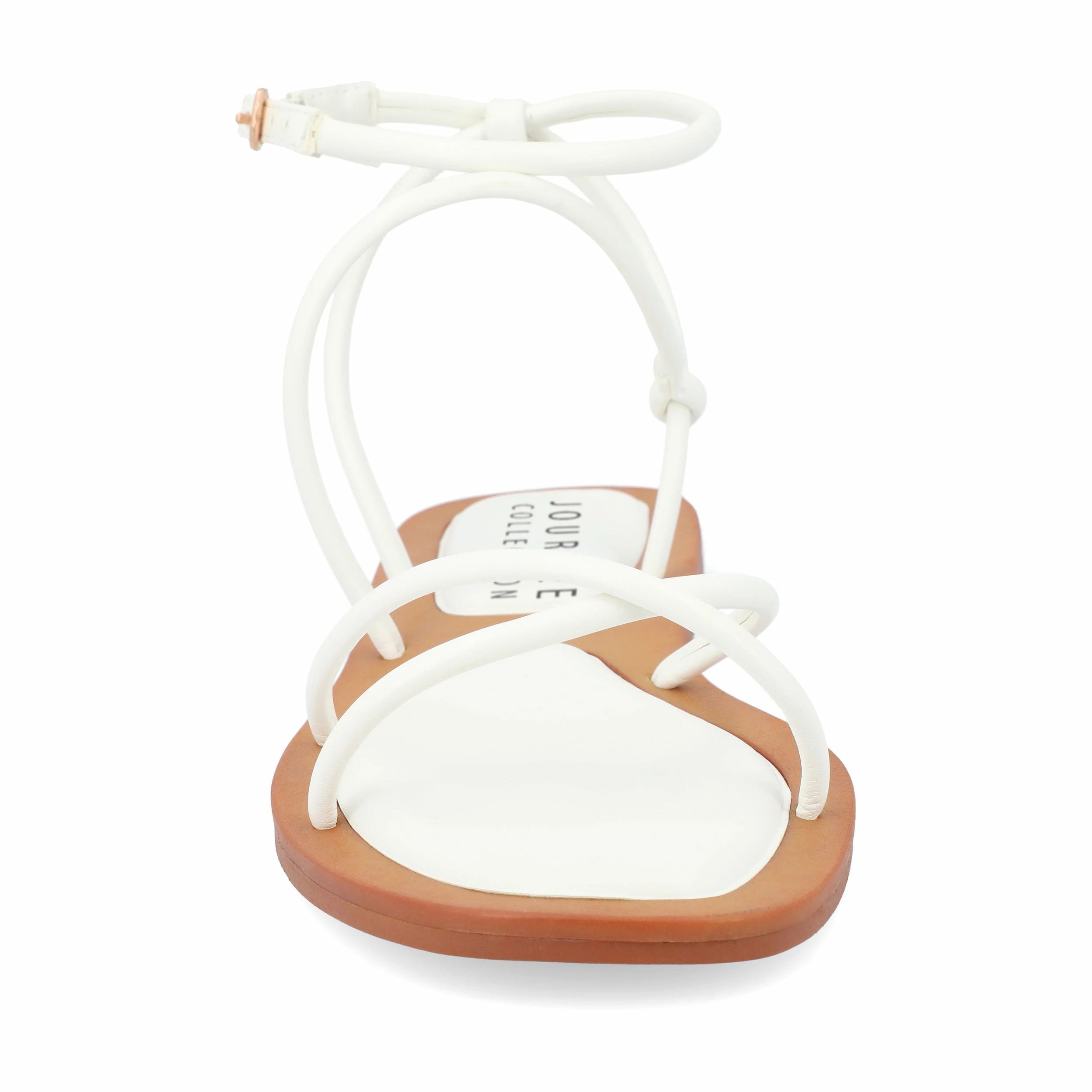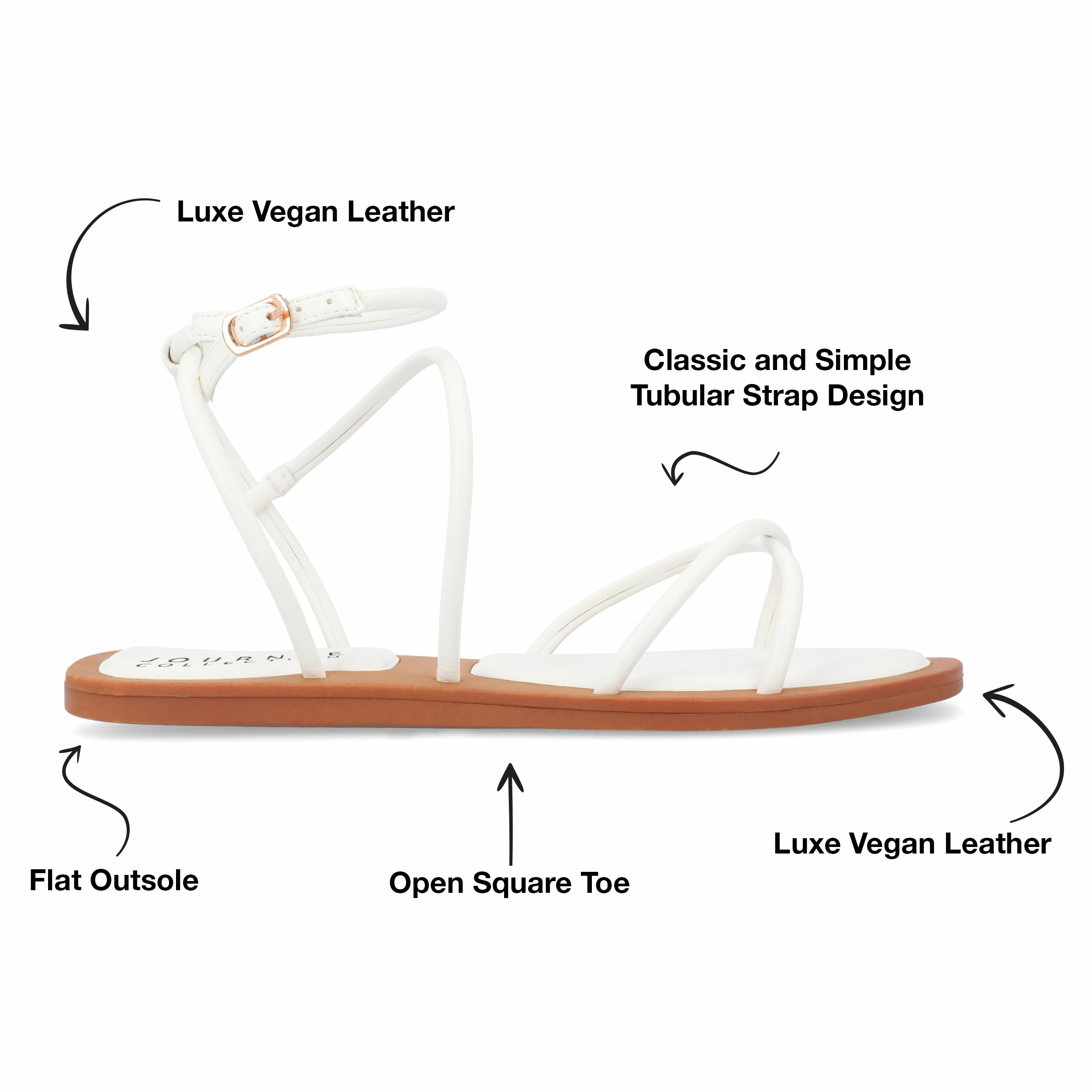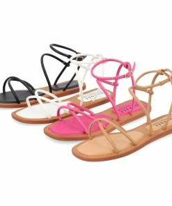 Crisscrossed straps and a buckle detail make this minimalistic sandal a must-have for summer.