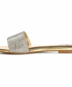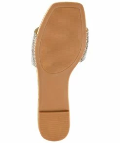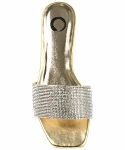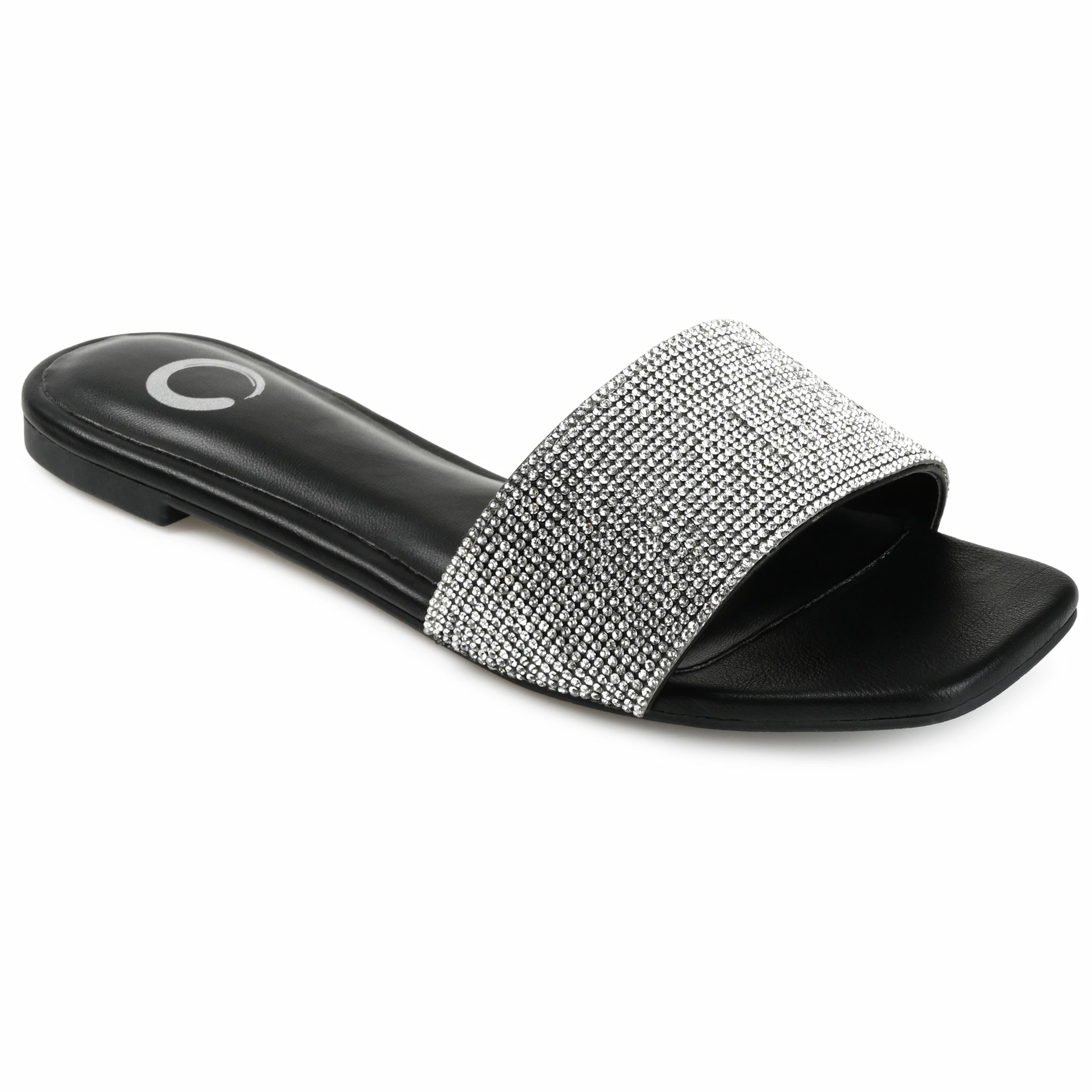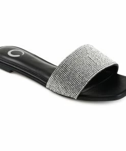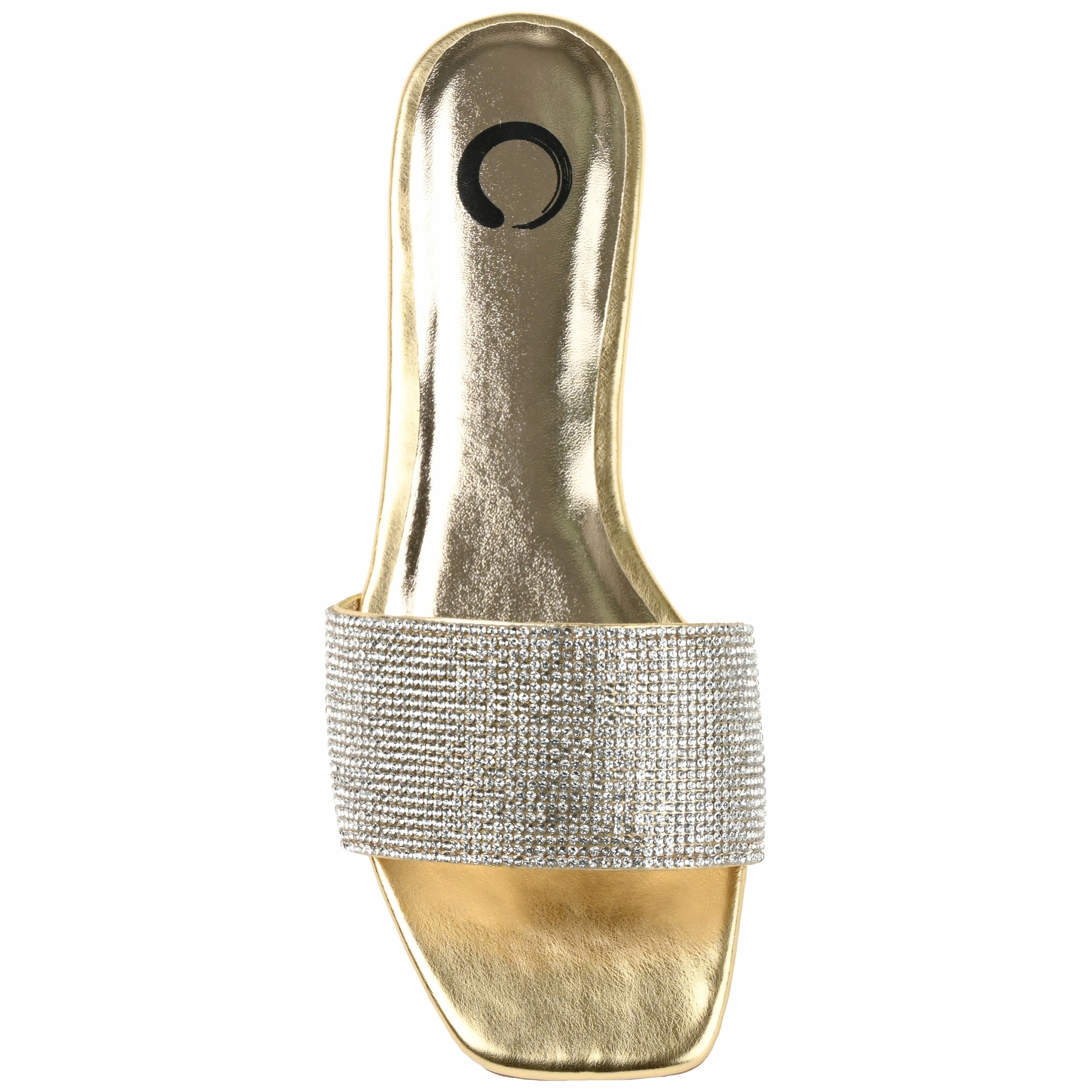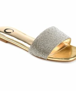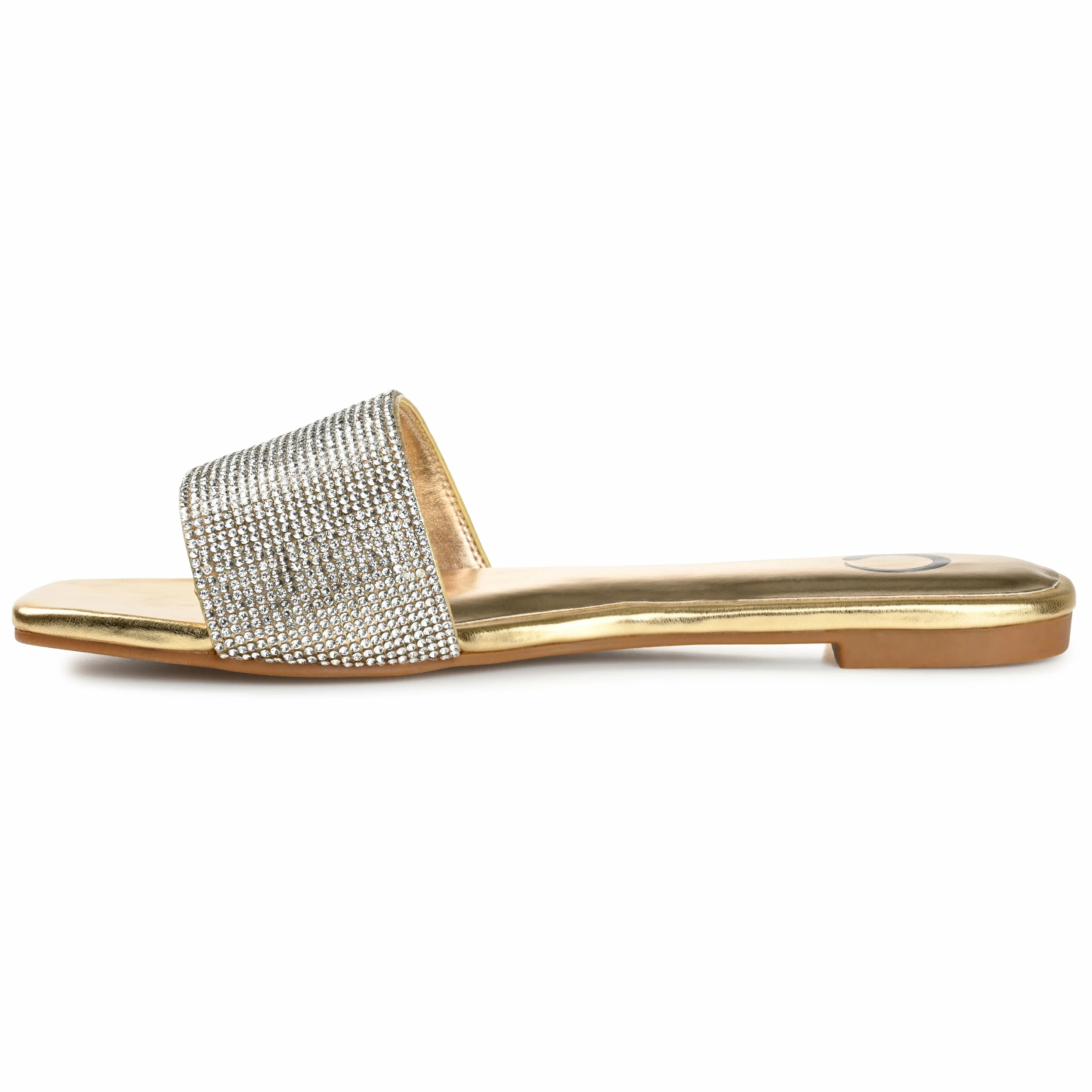 The rhinestone encrusted strap on this slide makes this easy look the best way to glam up your weekend outfit.