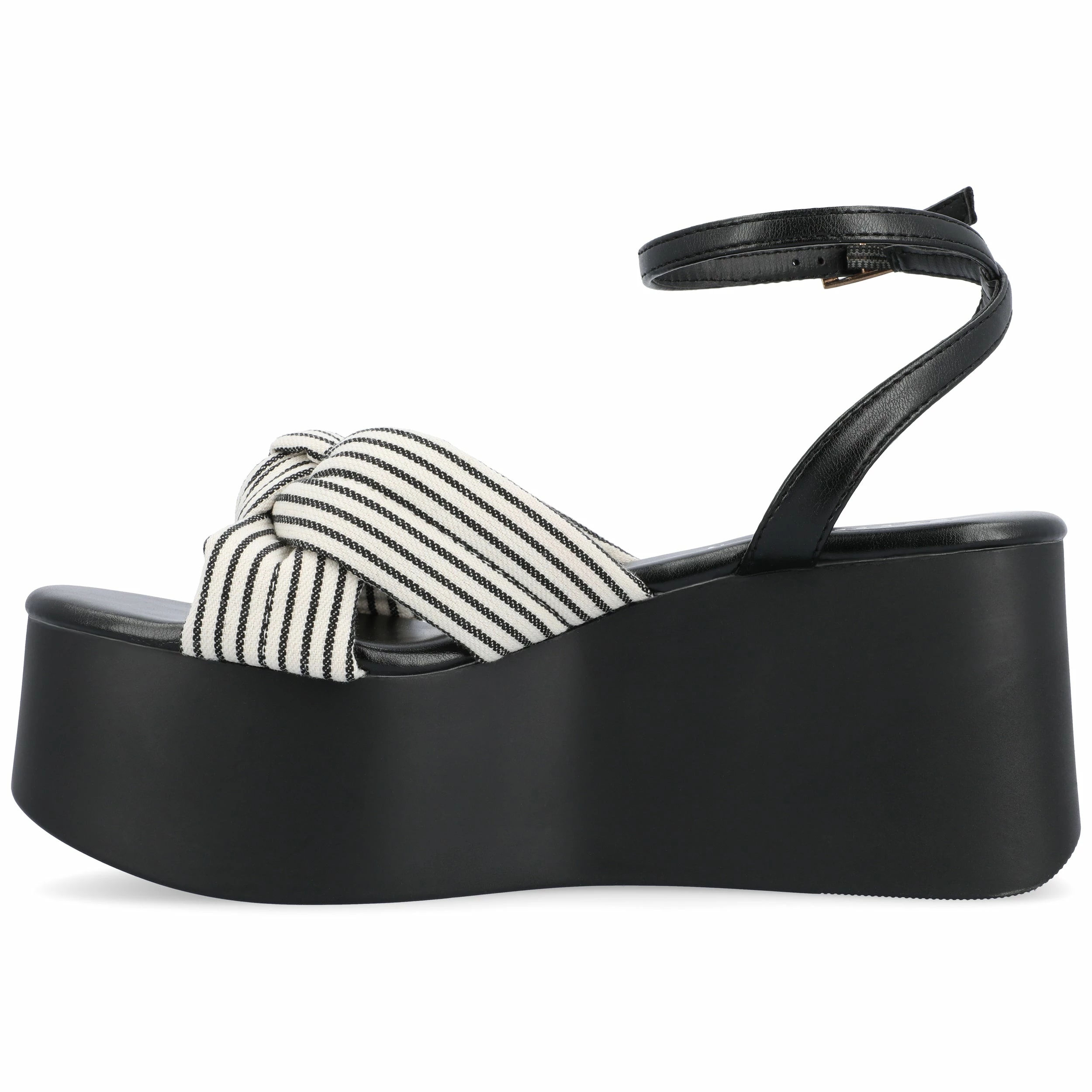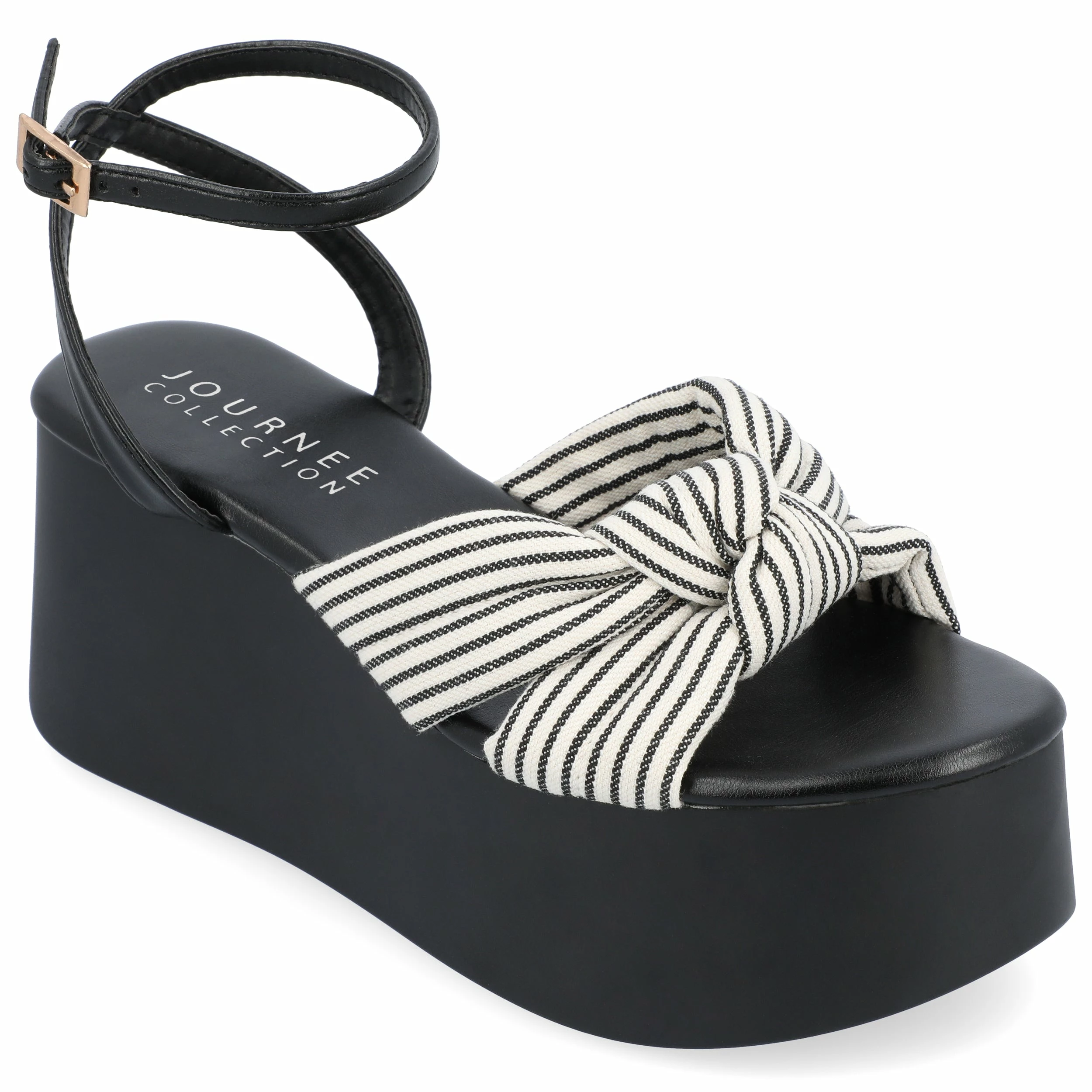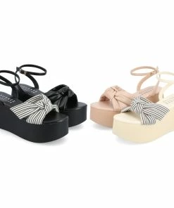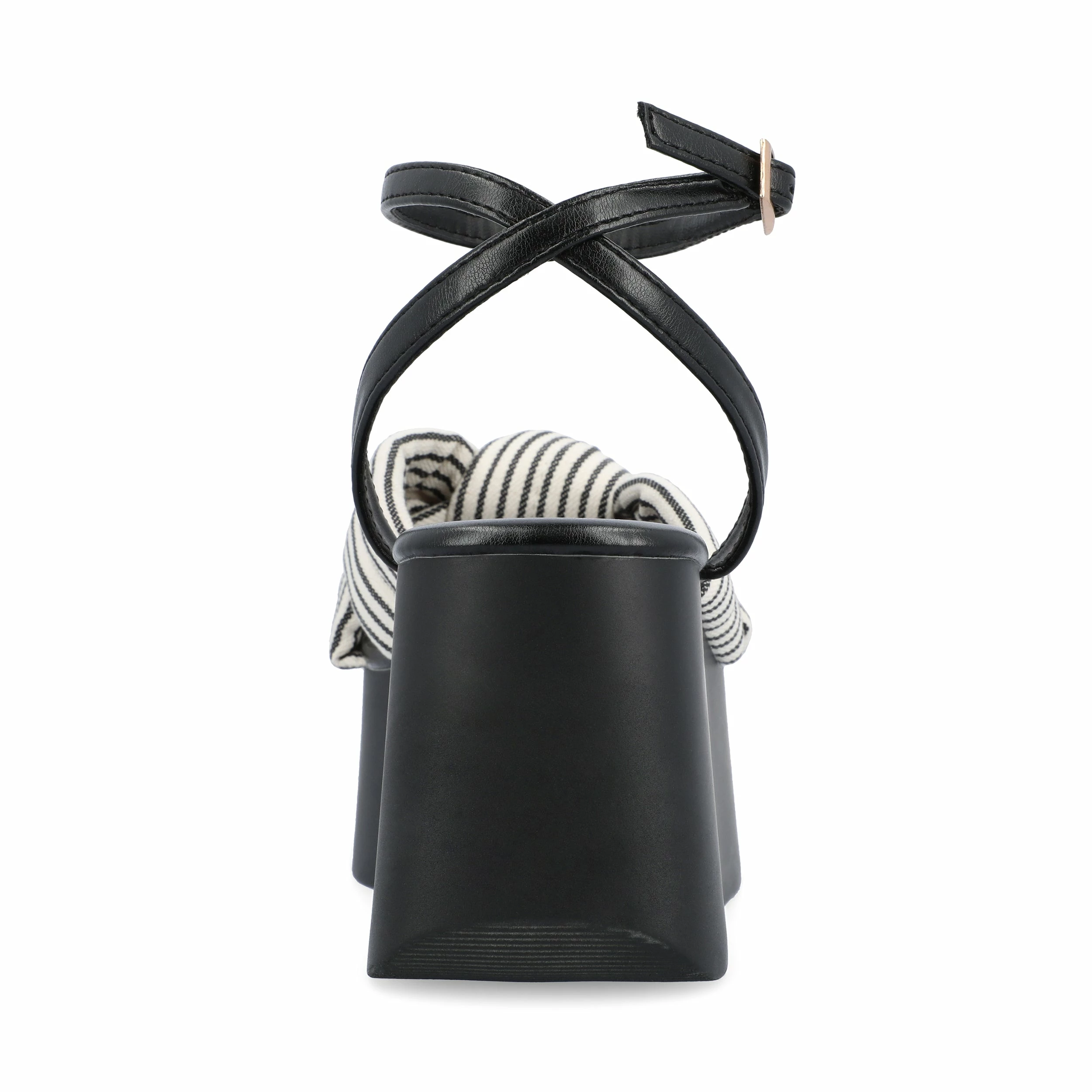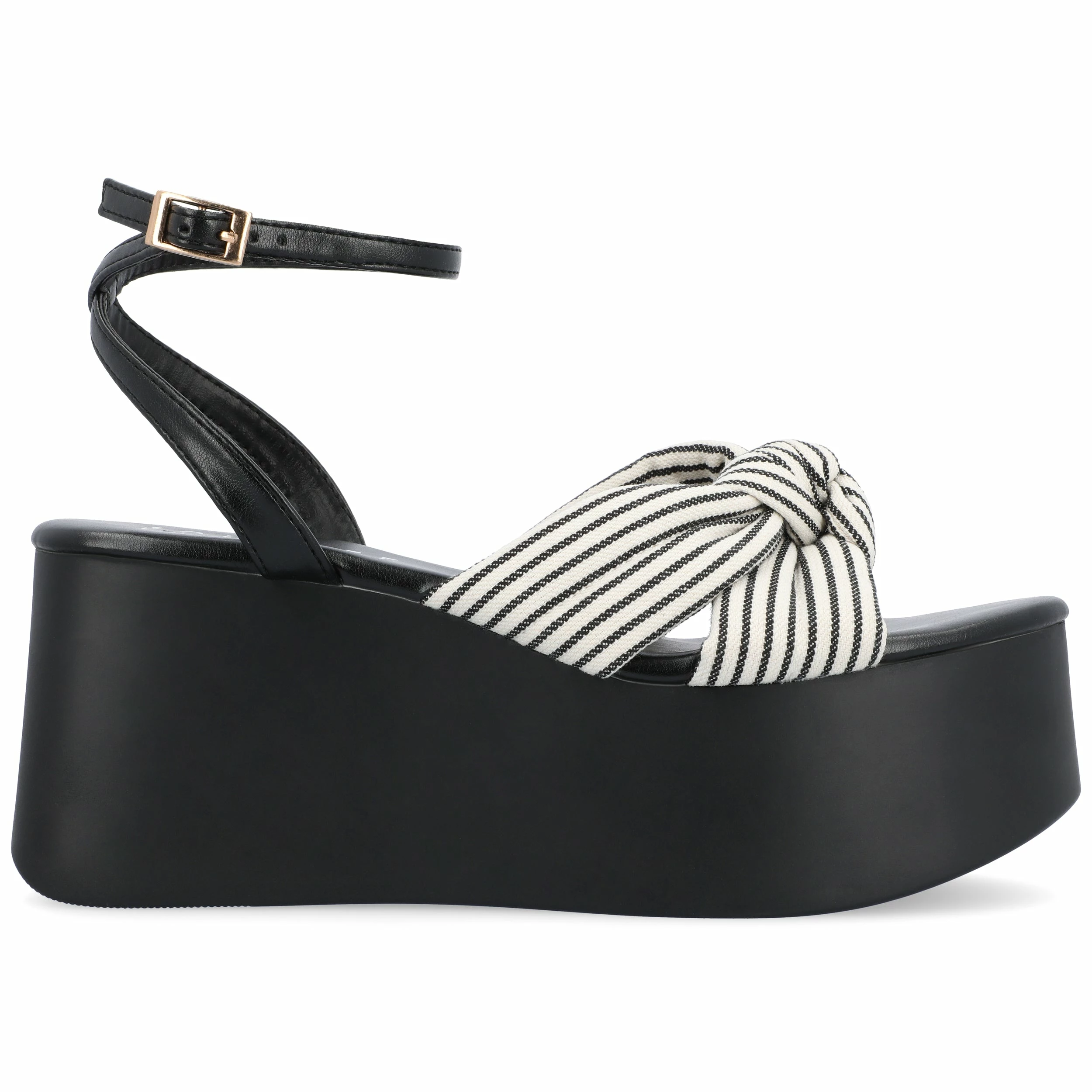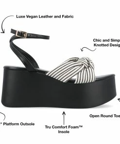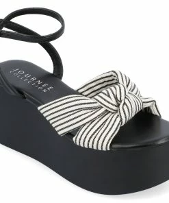 The platform heel and buckle accent on this summery style are sure to leave an impression.