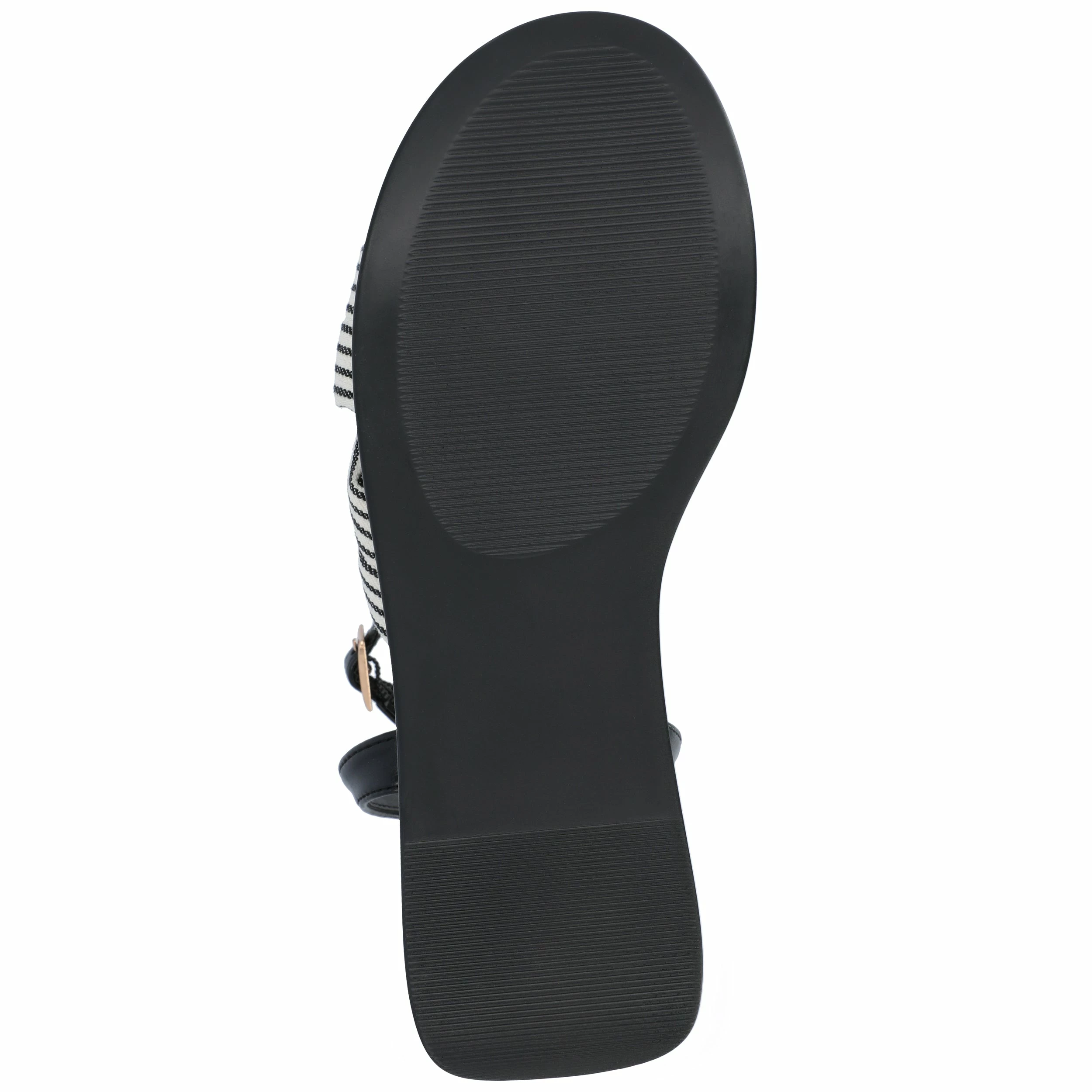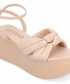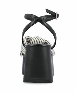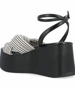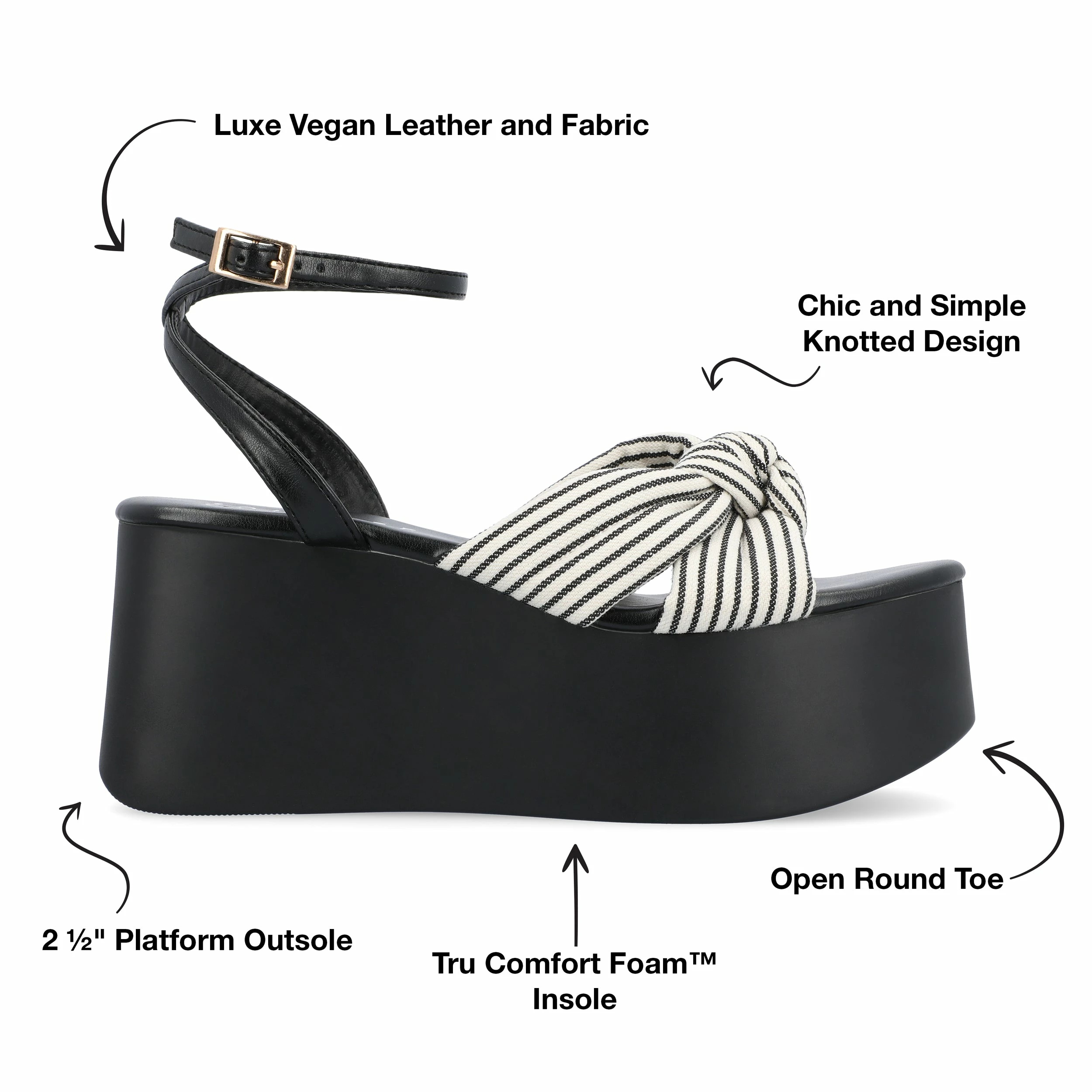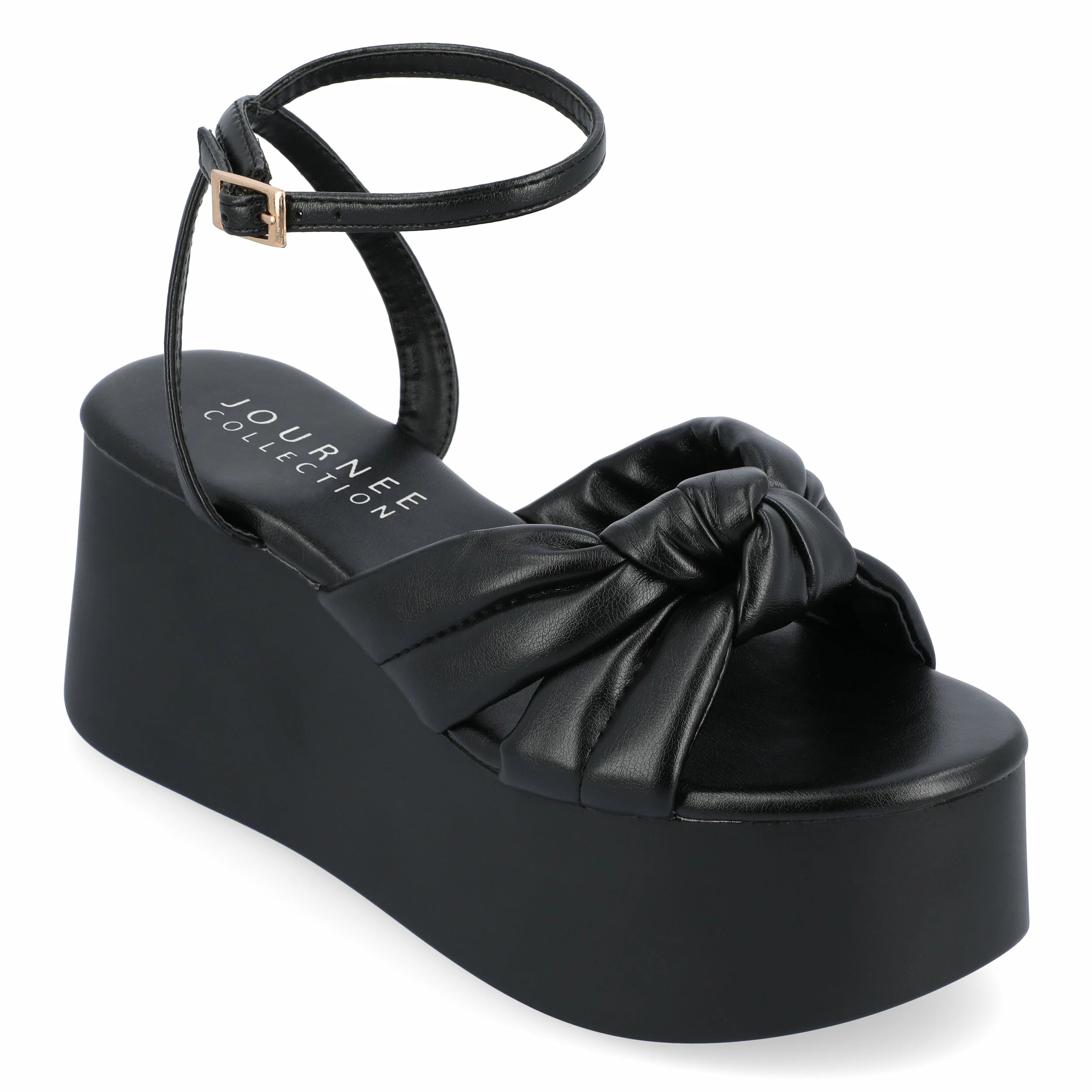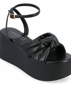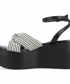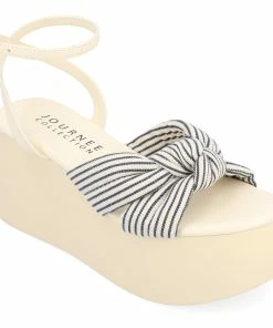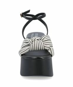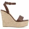 The platform heel and buckle accent on this summery style are sure to leave an impression.