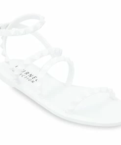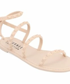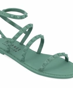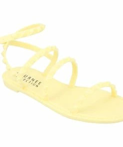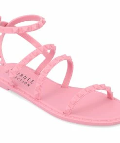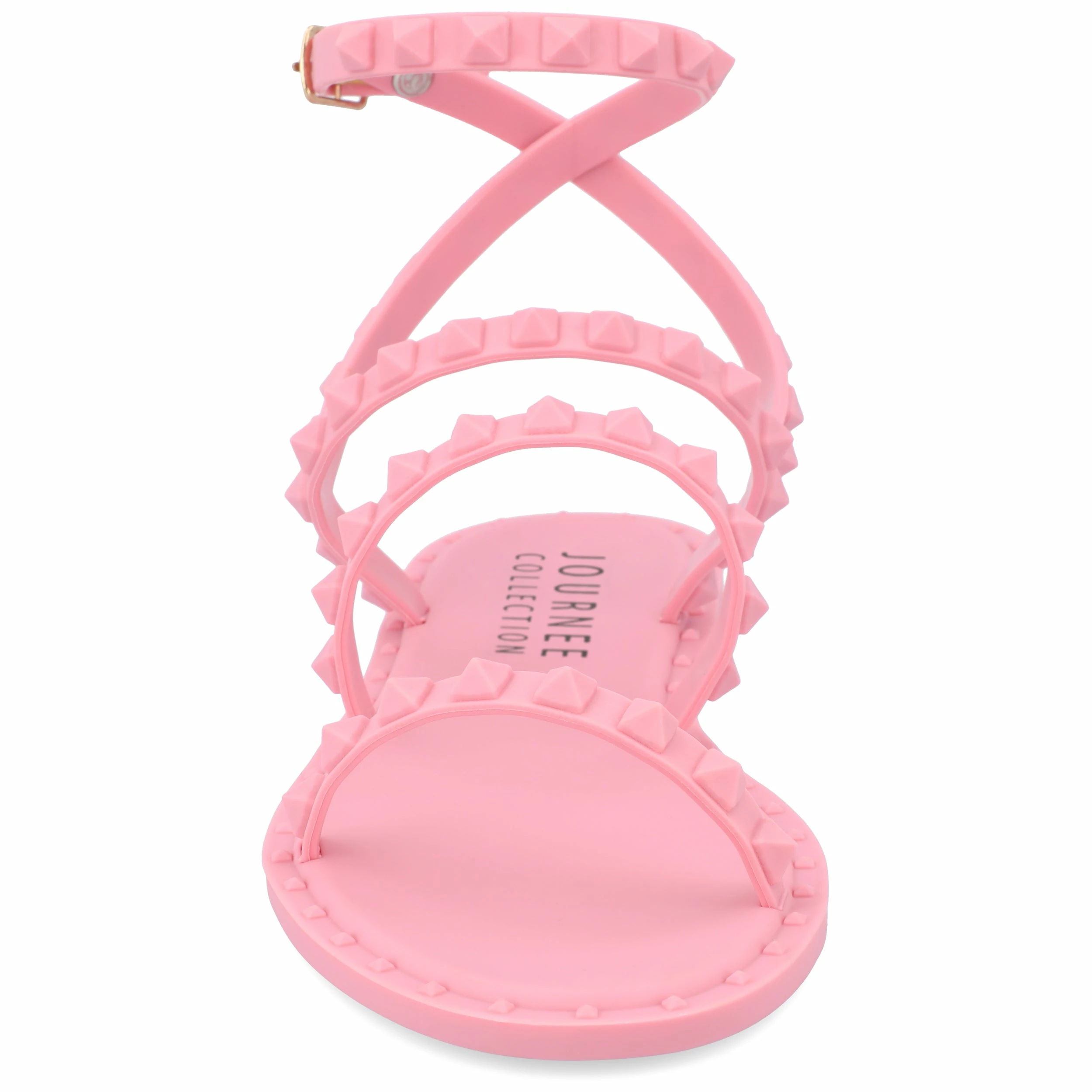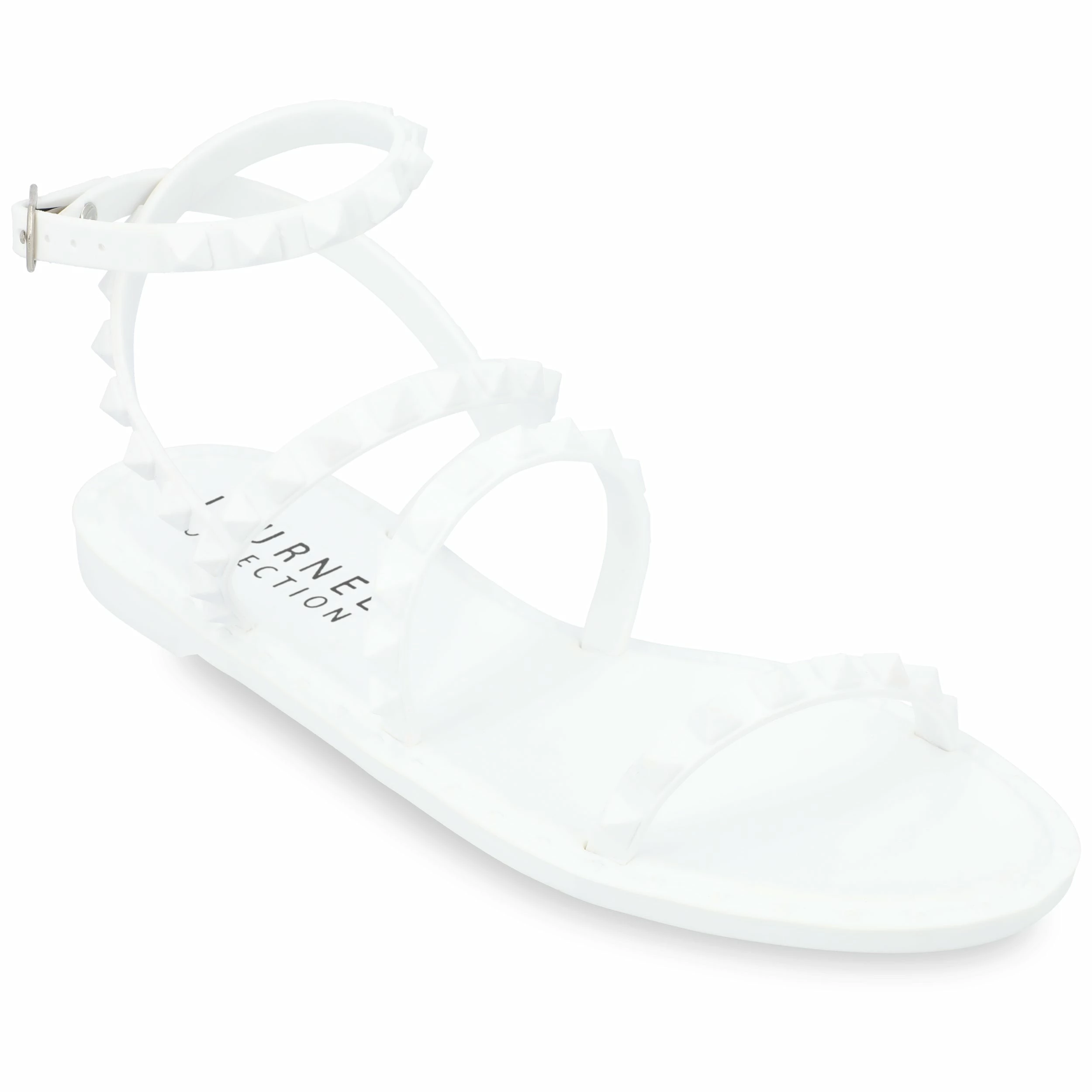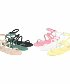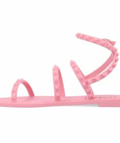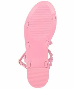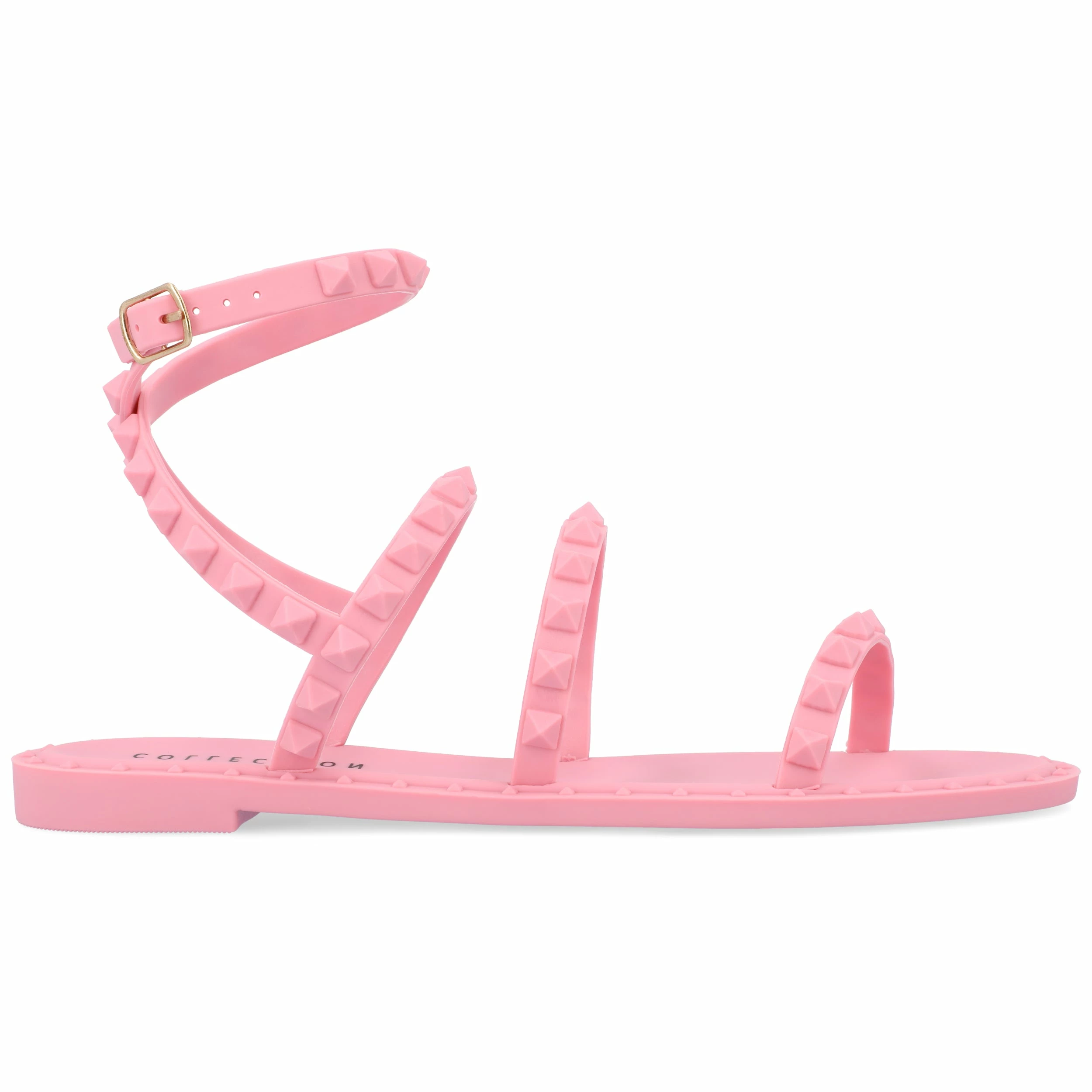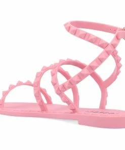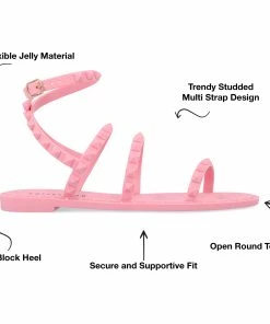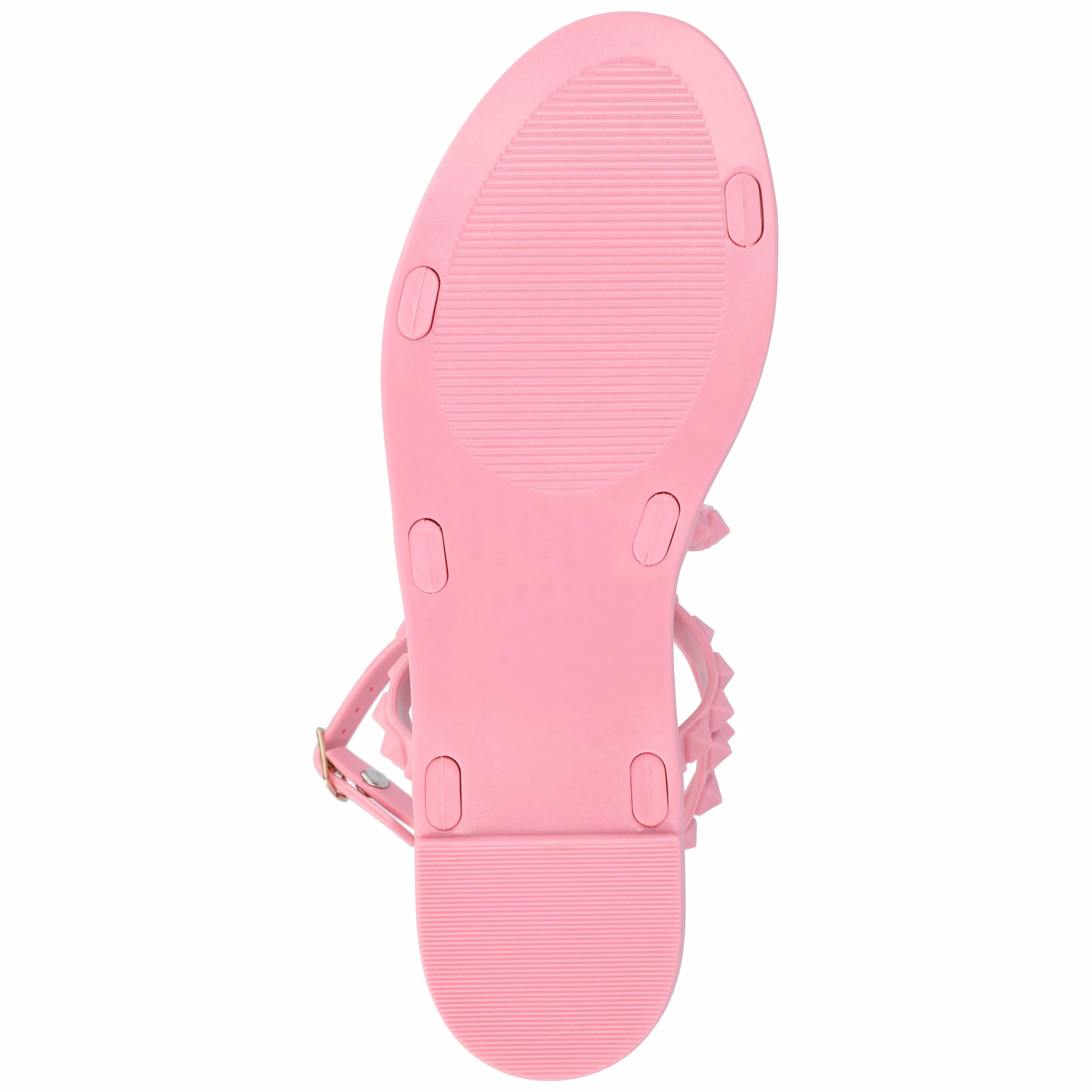 This boldly colored multi-strap sandal is made with flexible jelly for a retro look.