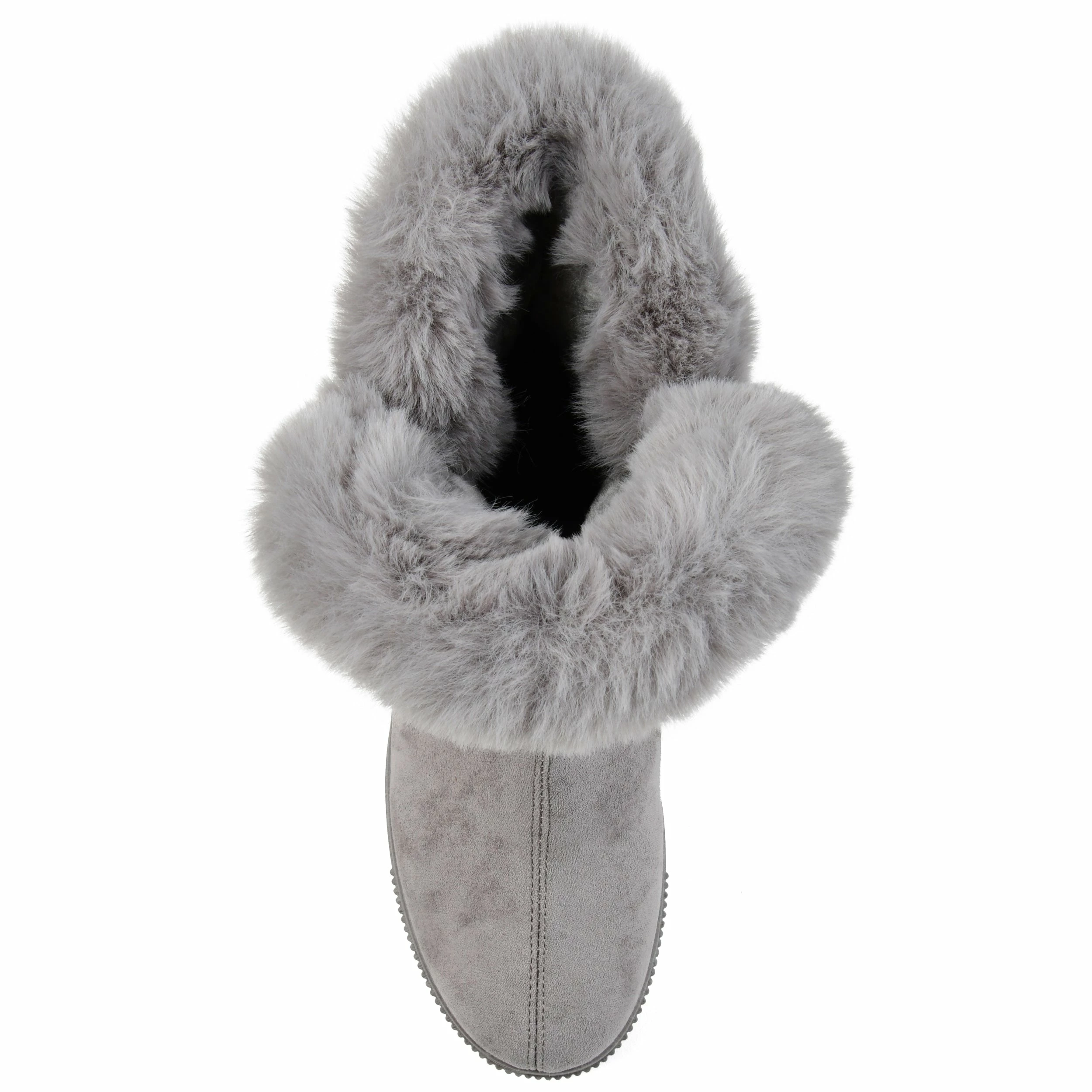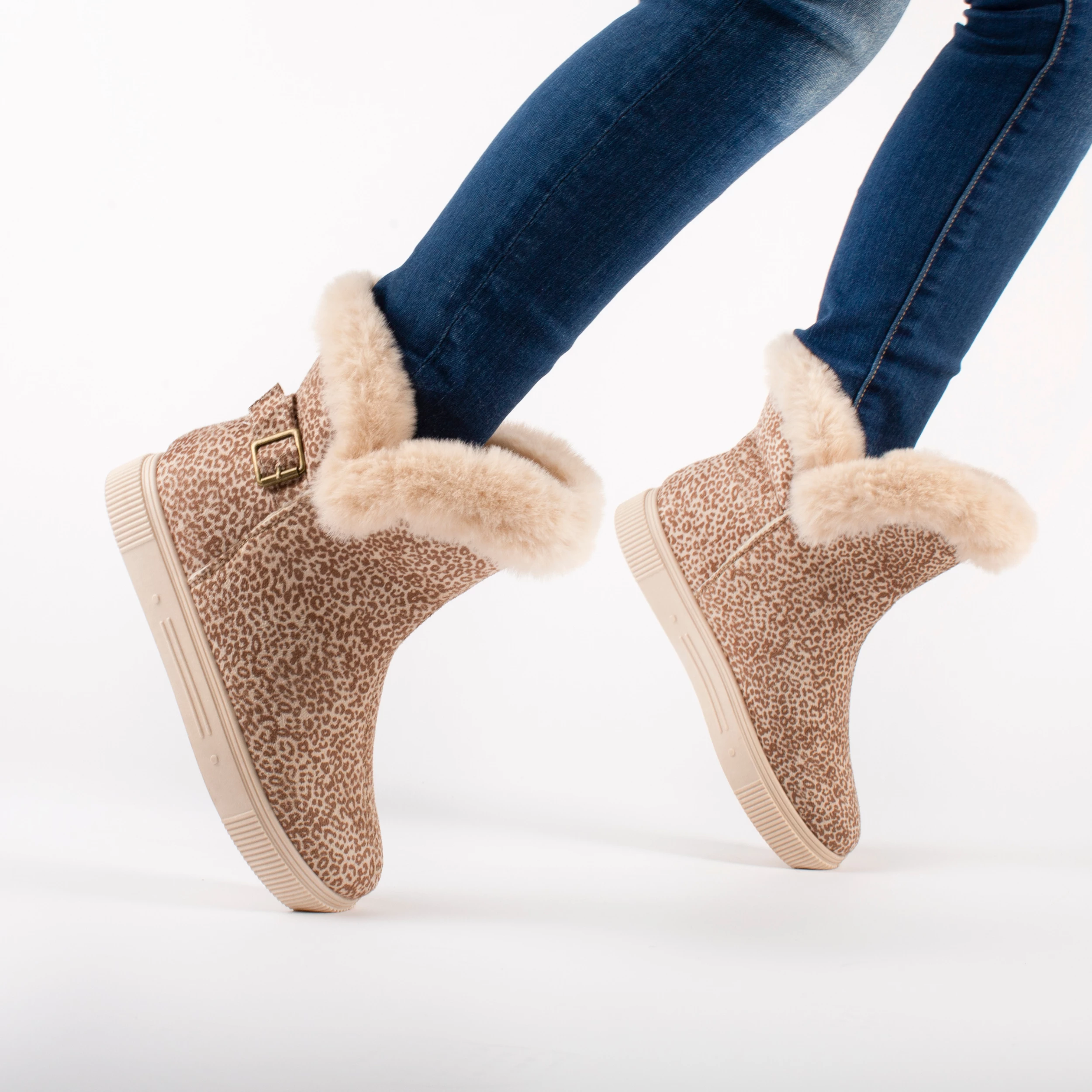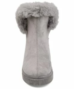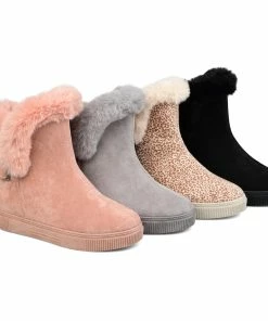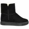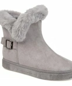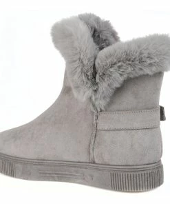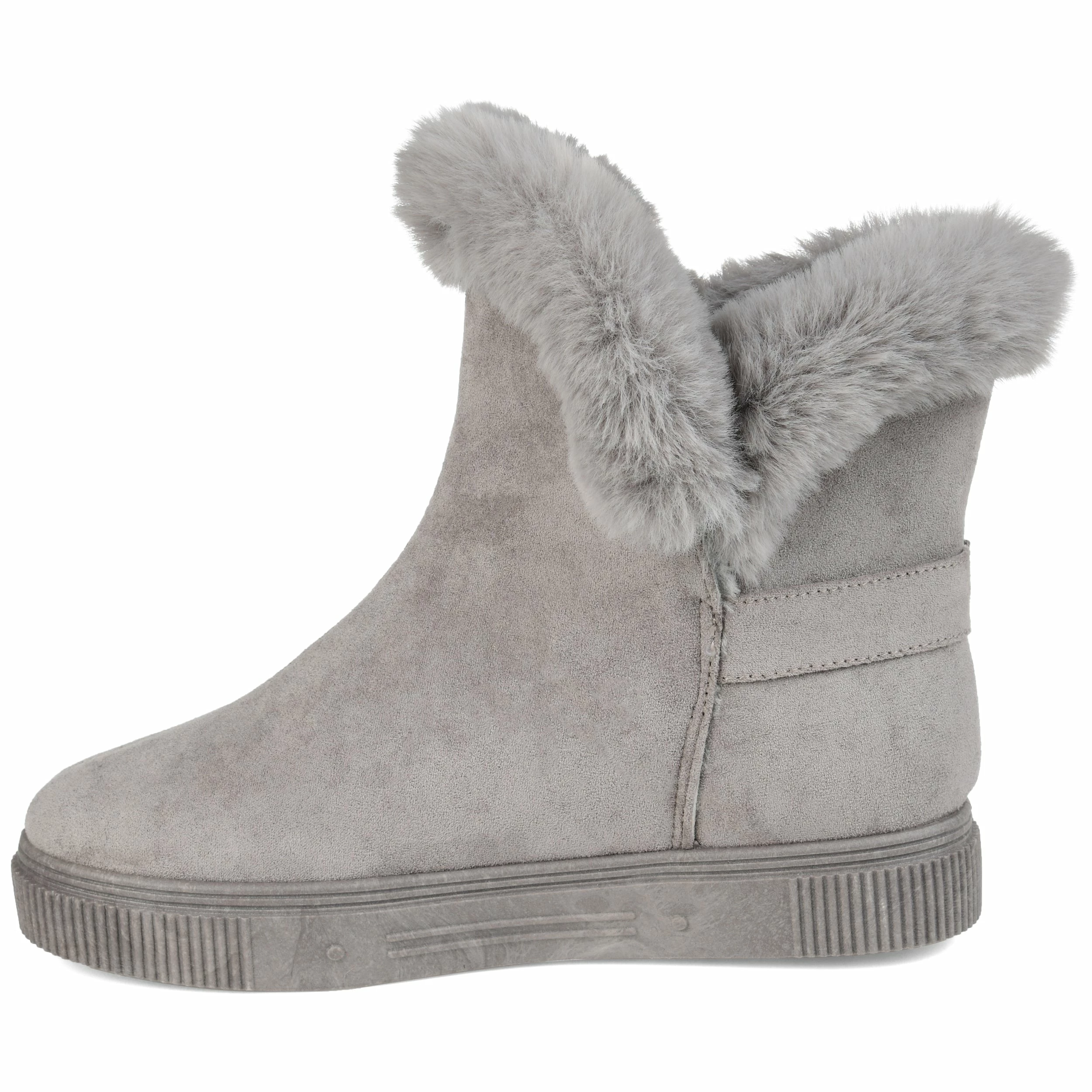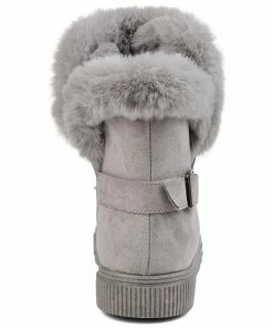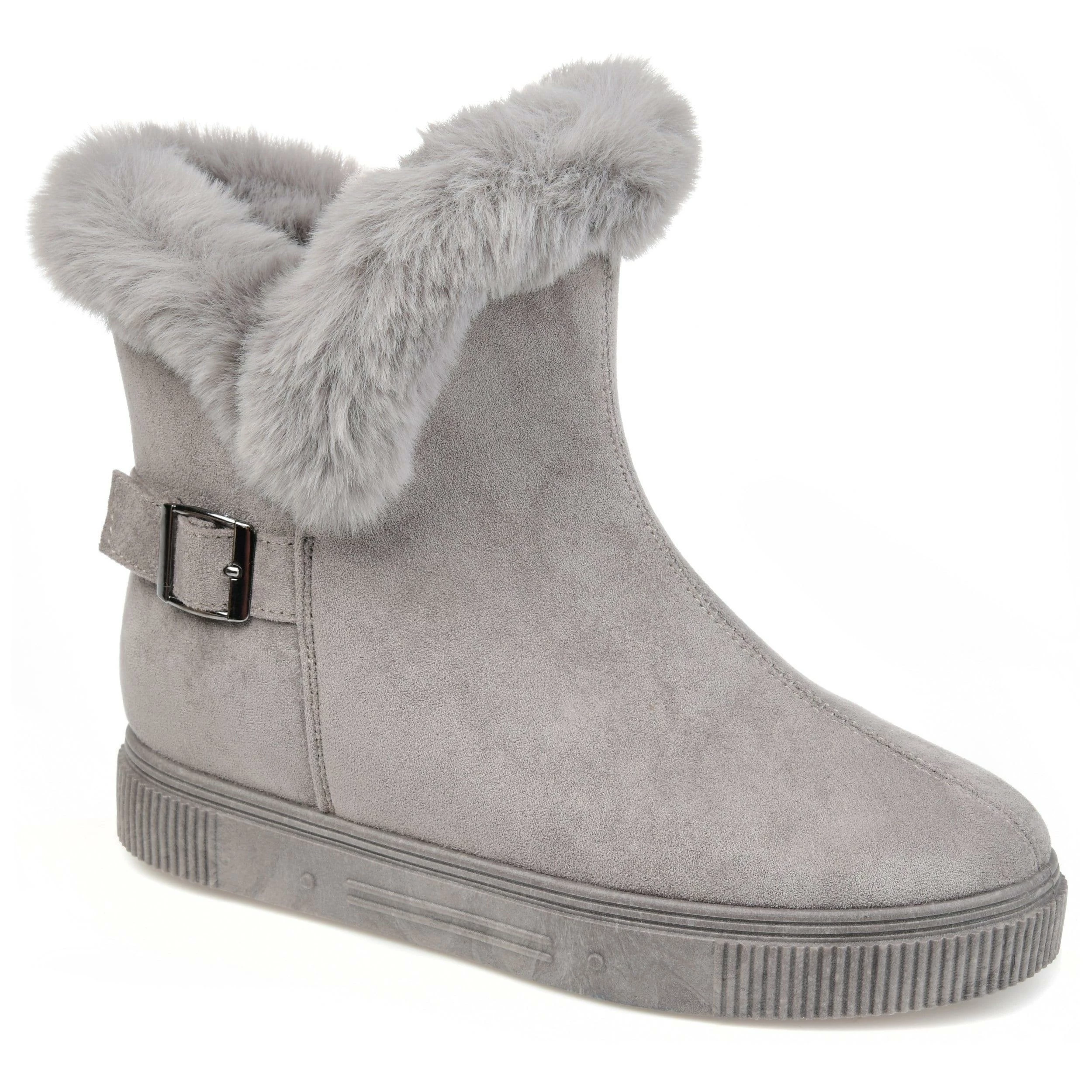 Slip-on an oh-so-comfy faux fur-lined casual boot rendered with velvety vegan suede detailed with a round-toe, a buckled strap, and a thick rubber sole made for icy cold days.