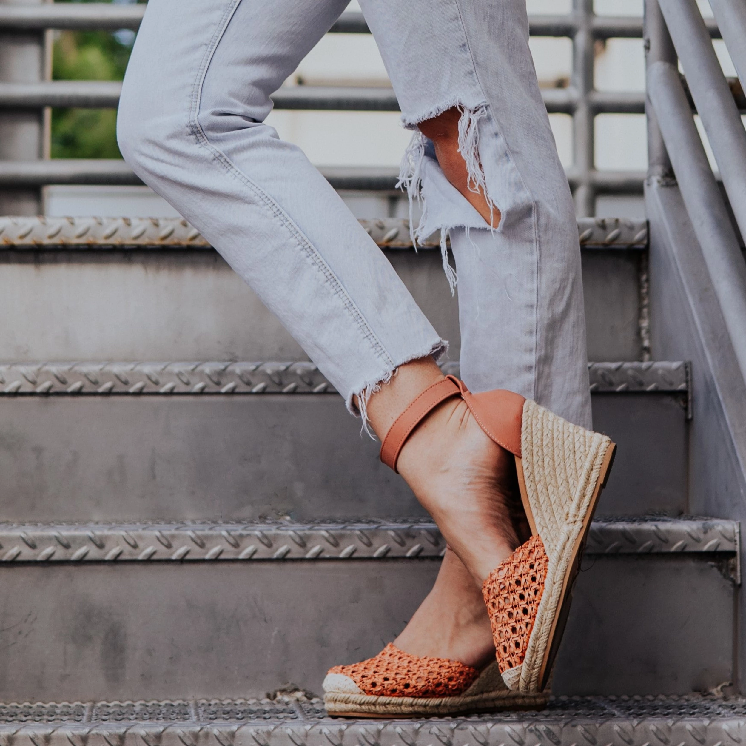 Embrace the espadrille trend with this vintage wedge heel.Â