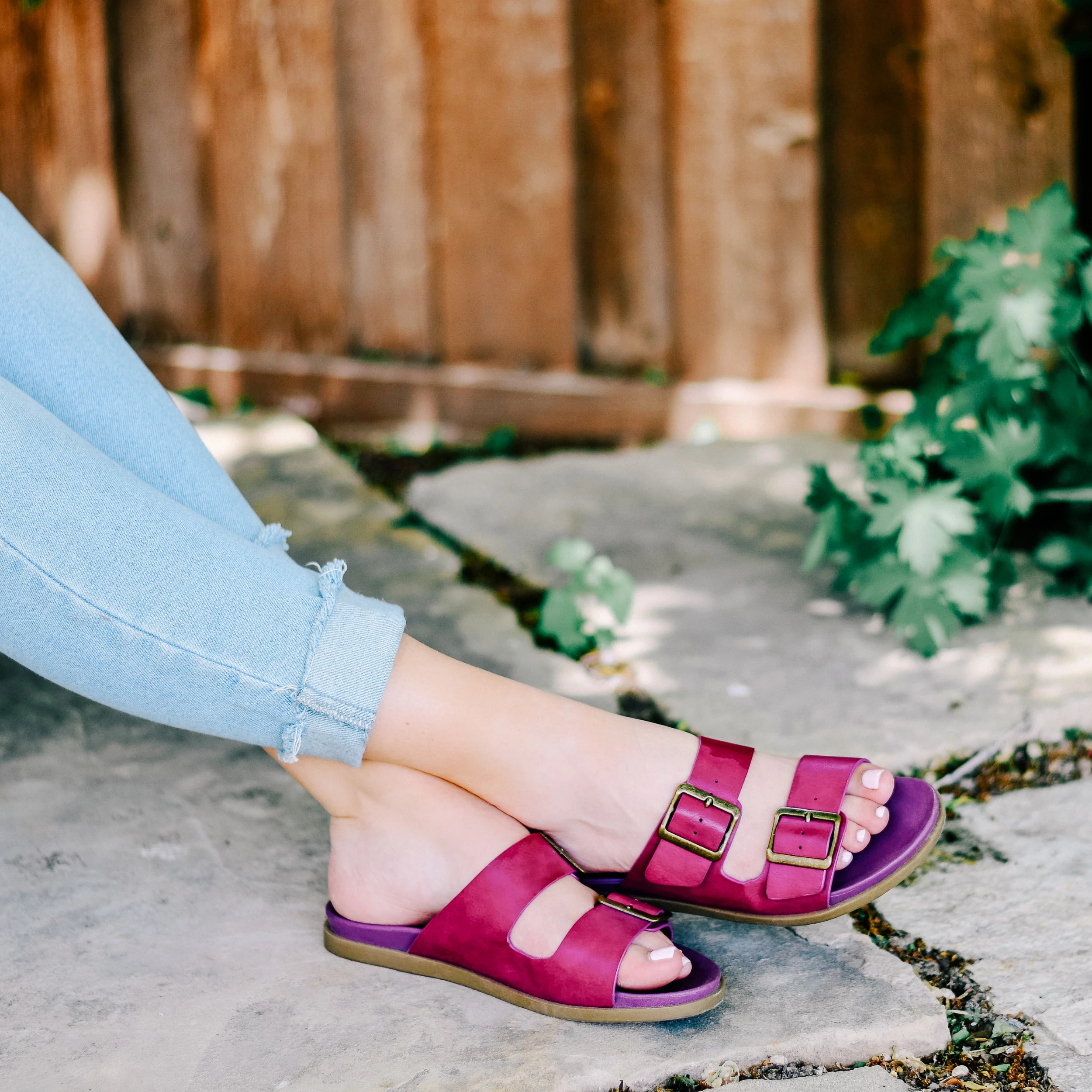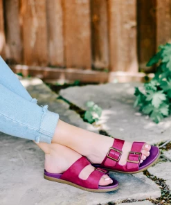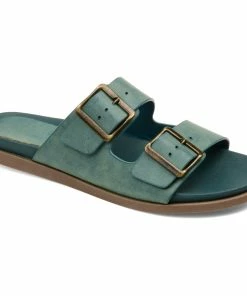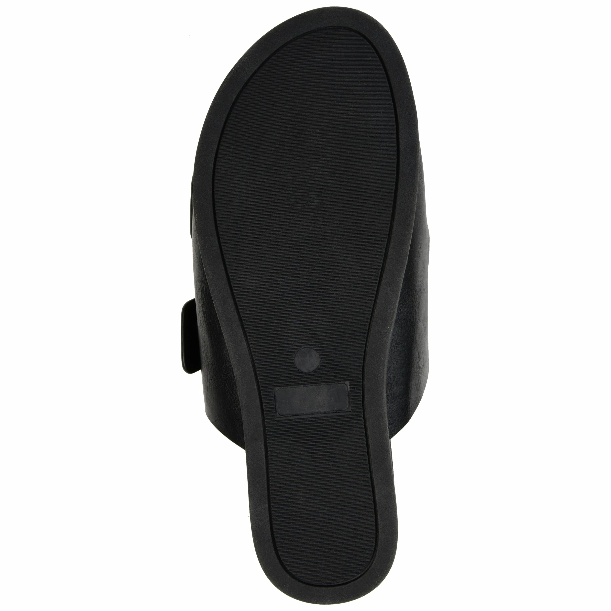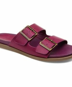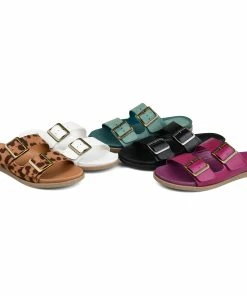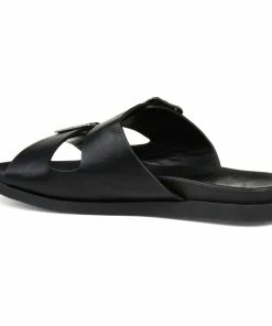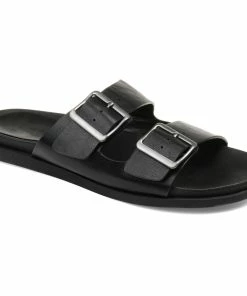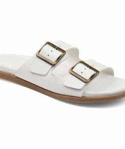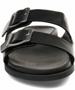 Bold square buckles top this throwback style. This cool, comfy, chunky slide is made with vegan leather uppers shaped into a thick dual toe strap resting on a flexible yet durable rubber sole for a perfectly effortless look.